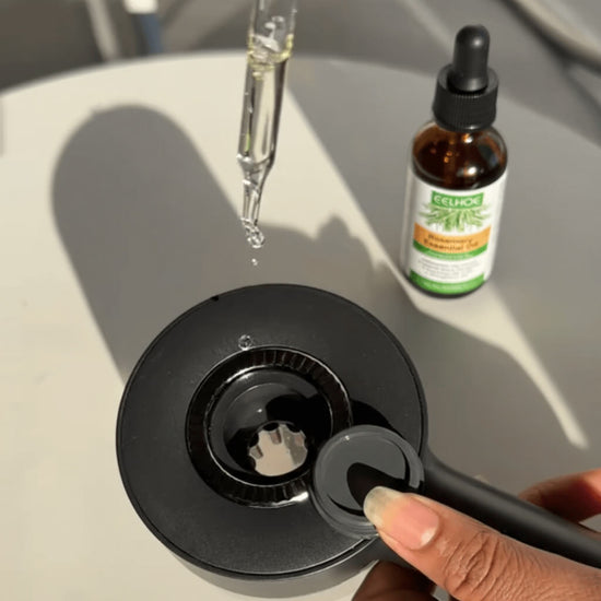Activez le soinCommencez par verser quelques gouttes de votre huile essentielle de romarin dans votre appareil Solévia.