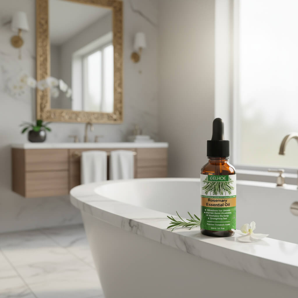 - Huile essentielle de Romarin : Active les follicules pileux, stimule la circulation sanguine et favorise une repousse plus rapide et plus dense.