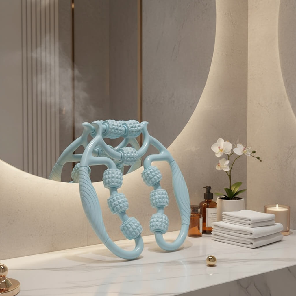 La pression exercée par les rouleaux stimule la circulation sanguine et favorise le drainage lymphatique, aidant à réduire l’aspect peau d’orange et à relâcher les tensions musculaires. Inspiré des techniques de massage professionnel, il reproduit l’effet d’un soin en institut, à domicile.