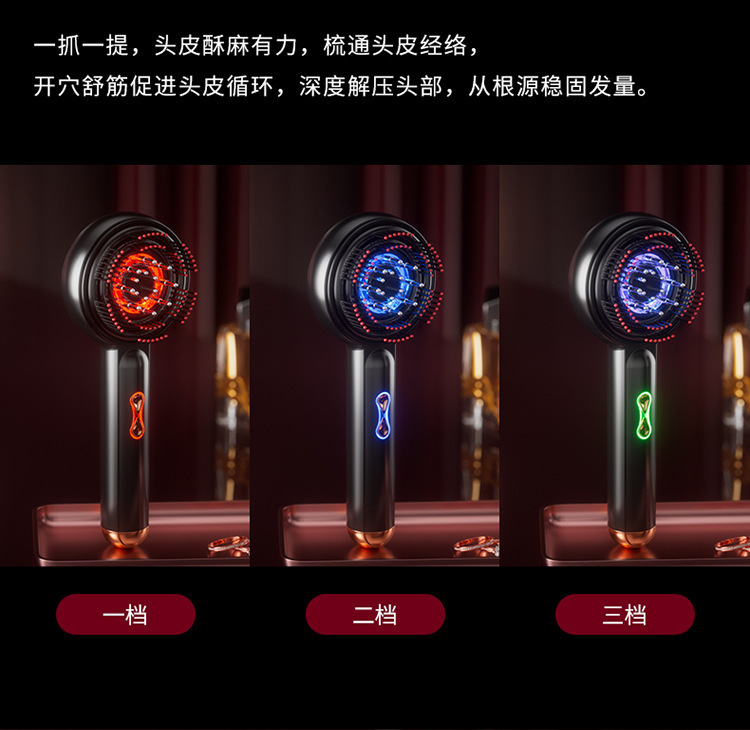 Pente elétrico de massagem de microcorrente, cabeça de medicina, pente elétrico de condução líquida com luz vermelha, massajador de cabeça